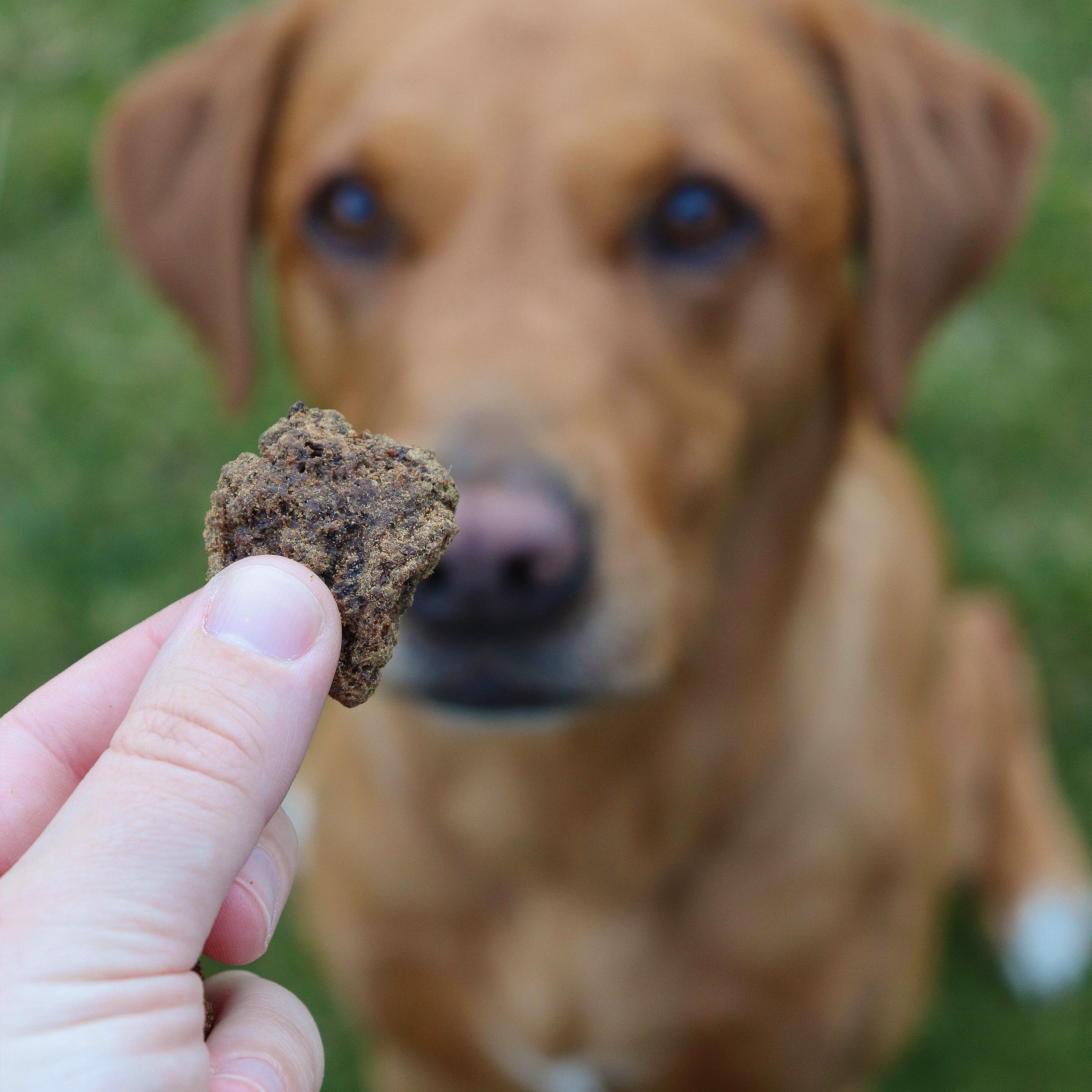 Our Beef Nuggets with Kelp dog treats are beautiful, air-dried, crunchy morsels that dogs absolutely love. They're made from only 2 ingredients, beef and kelp, making them 100% natural, grain, and cereal free from any additives.