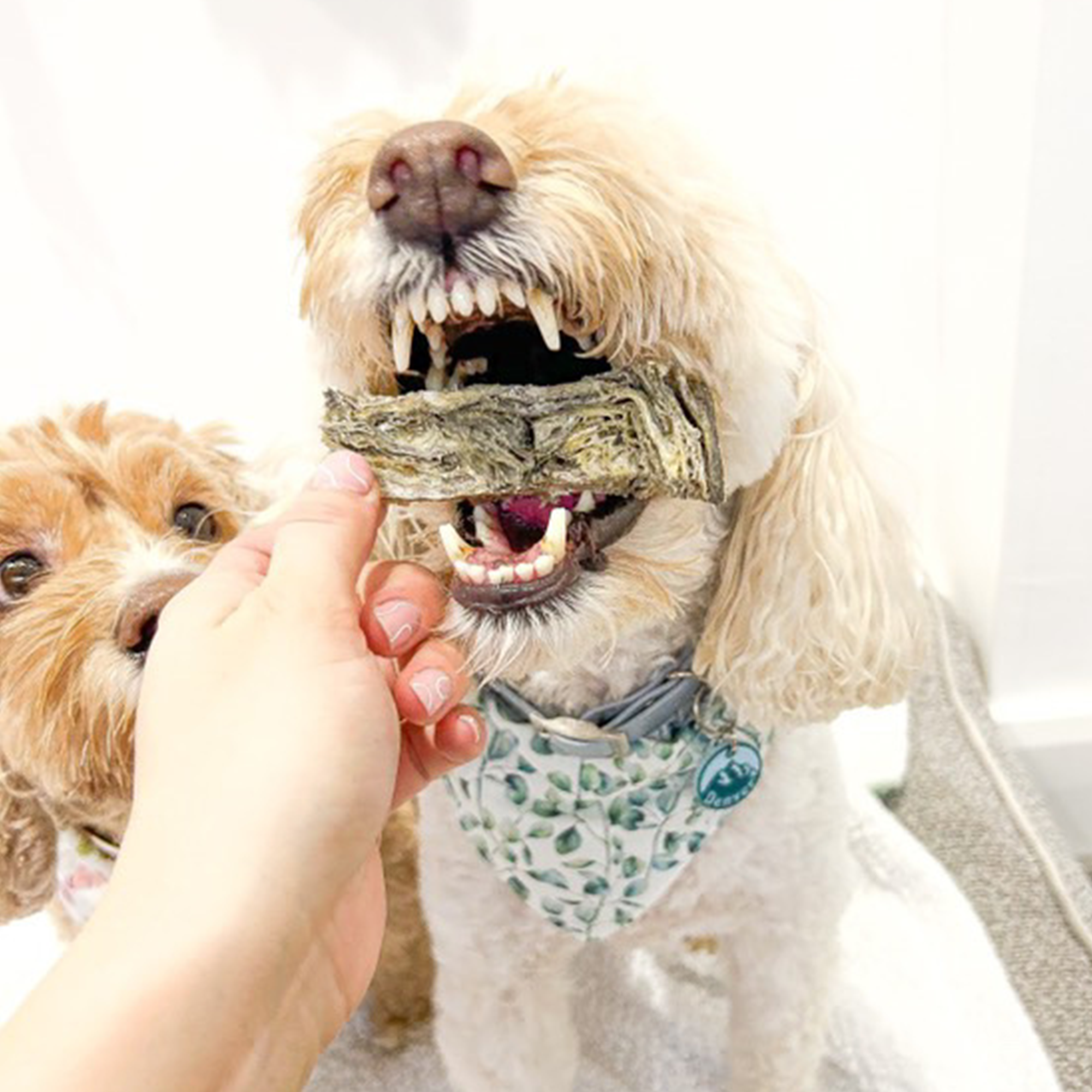 Our high-protein treats are made from 100% air-dried Cod skins! The moisture in our Fish Fingers are gently extracted in our drying chambers leaving you with a more nutritionally dense treat. It’s a Finger with no additives and no preservatives, just an all-natural, nutritious and tasty treat. It’ll leave your dog wanting more and the bonus is that it also helps to clean their teeth!