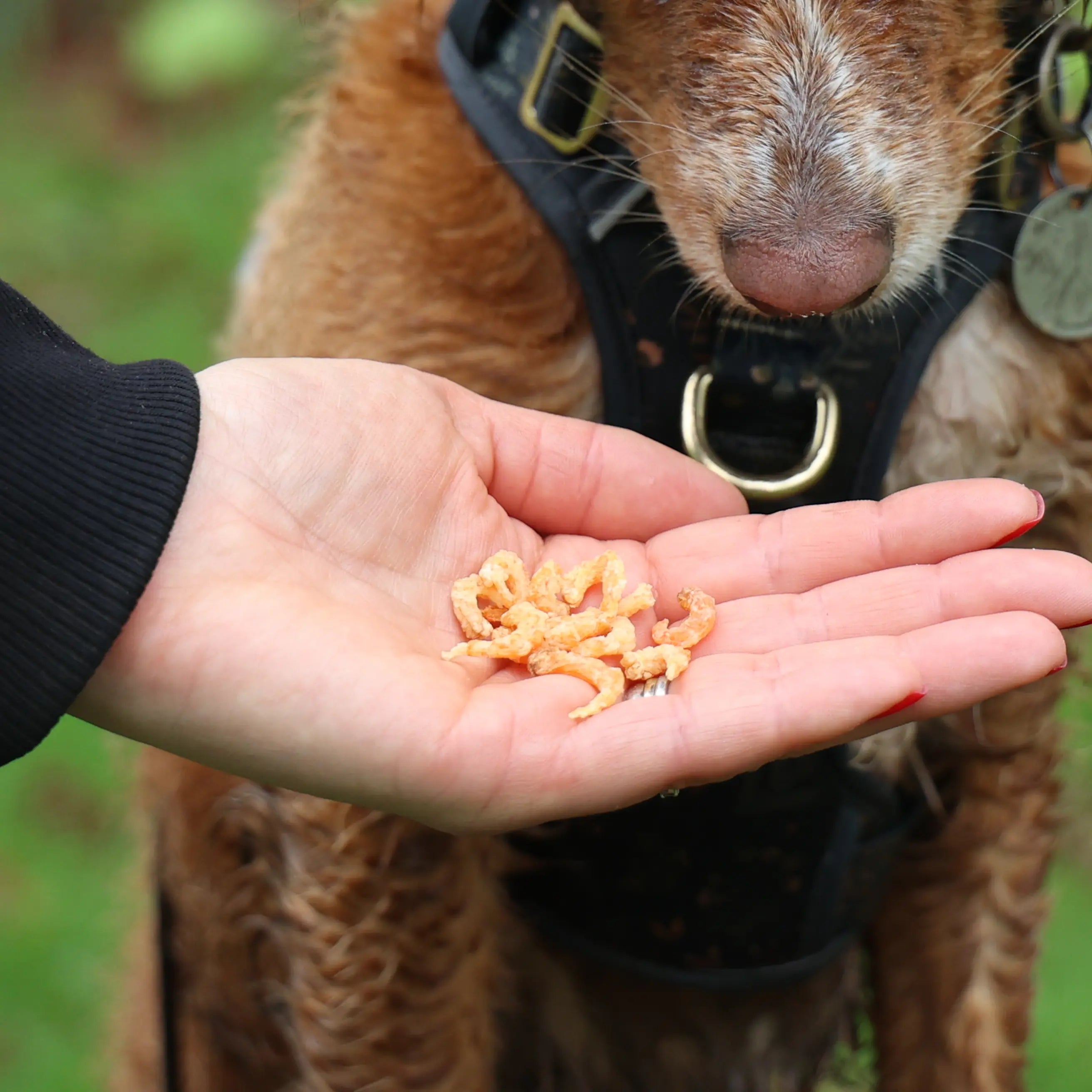You can use our Prawn Sprinkles as a tasty topper for your dog’s regular meals, mix them into enrichment toys for added challenge, or reward your dog or cat with a protein-packed sprinkle of love.