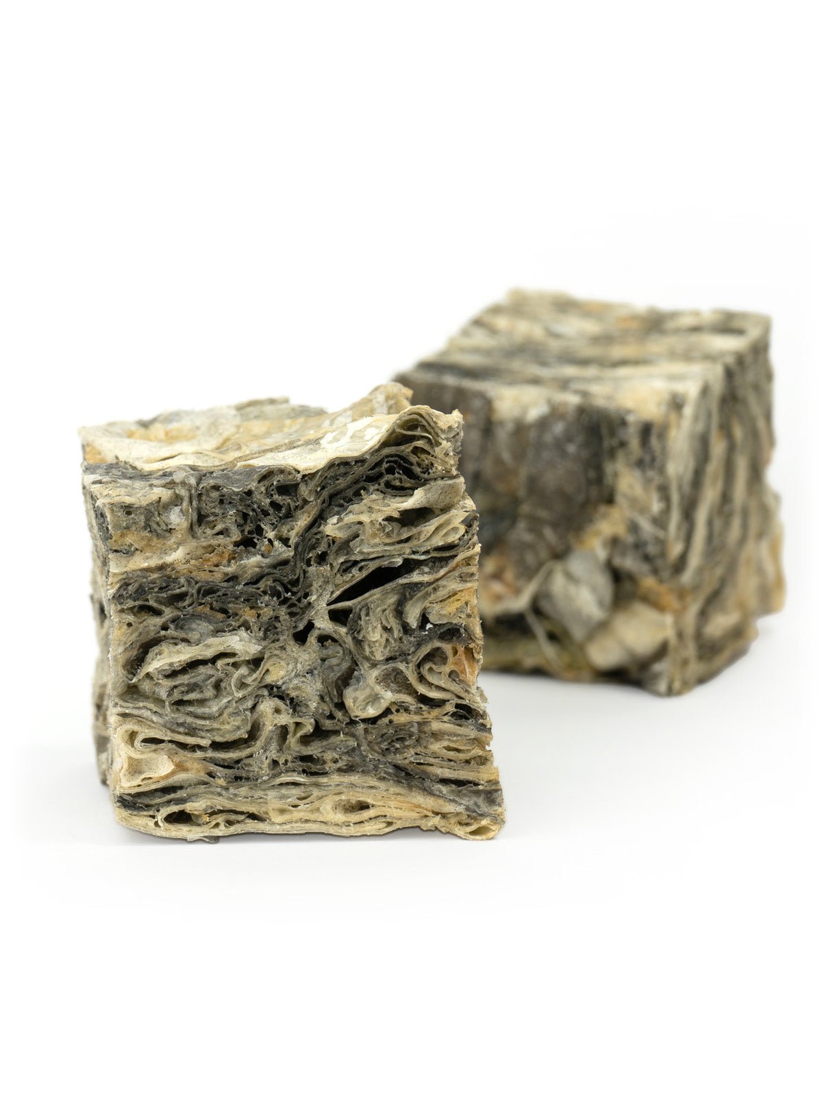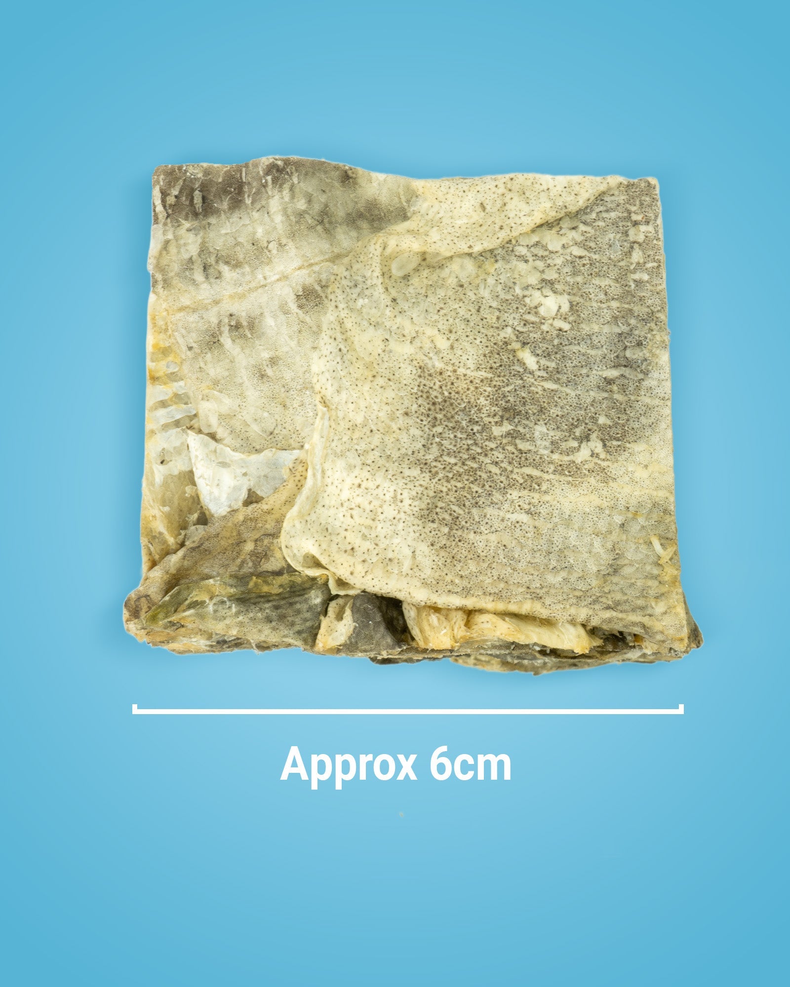Made from 100% Cod skin, the fish skin is dried at low temperatures to lock in as many beneficial nutrients and flavour. Plus, our unique drying method creates a durable and naturally abrasive texture that helps to scrub away plaque and tartar on your dog's teeth as they chew.