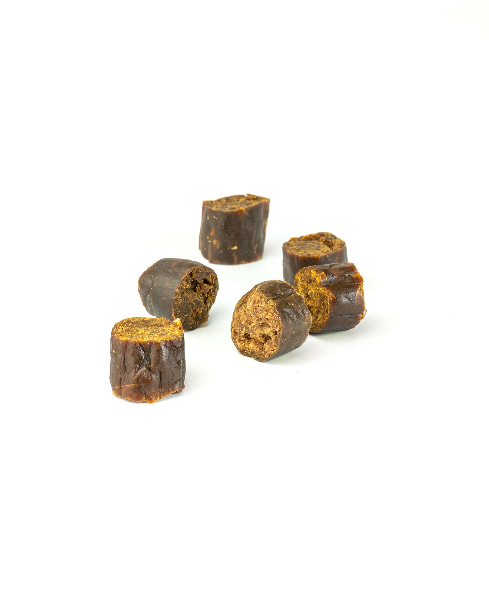 Thin and easy to break, these tasty slices are ideal for training sessions, rewarding good behaviour, or simply treating your dog to something delicious. Whether you’re teaching new tricks or treating between meals, our Chicken Slices with Pumpkin and Turmeric are sure to get tails wagging!
