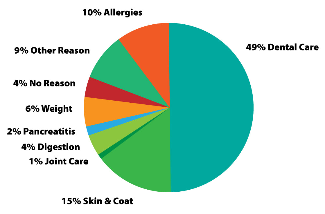 Most of of our customers come to us because they're trying to find a solution to a particular health problem their dog has, like dental issues or dry itchy skin.
