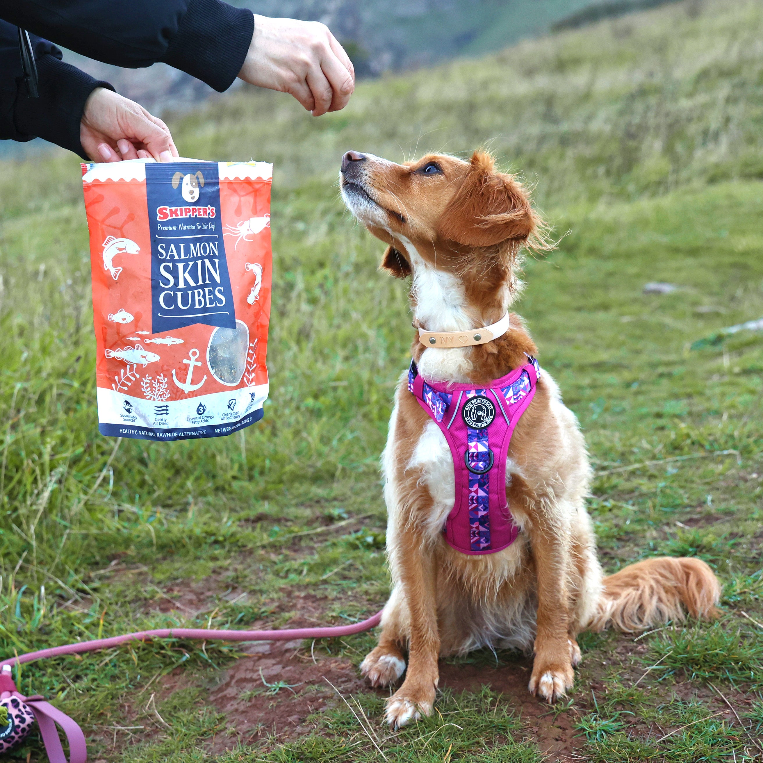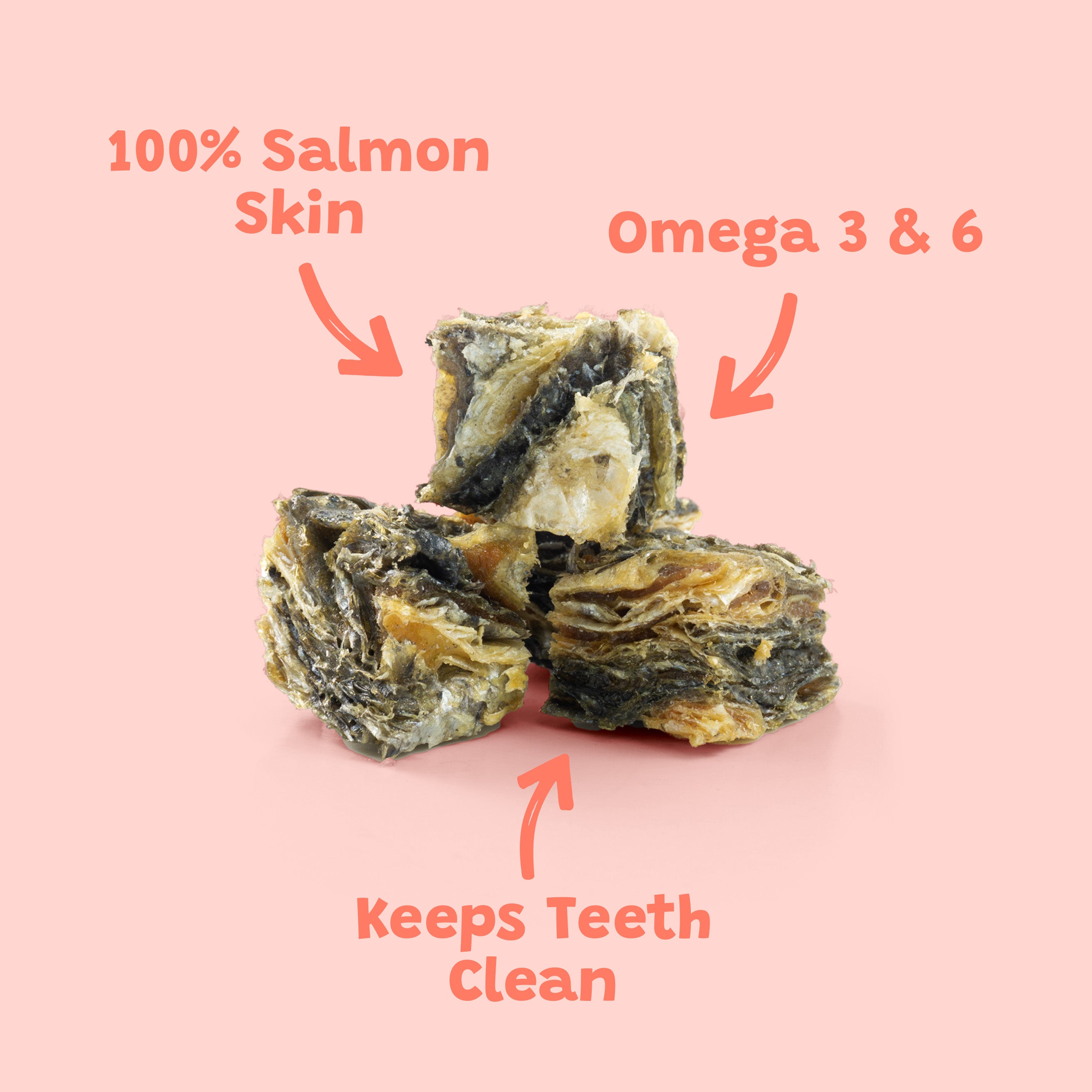 Indulge your dog with the irresistible taste of Salmon Skin Cubes.