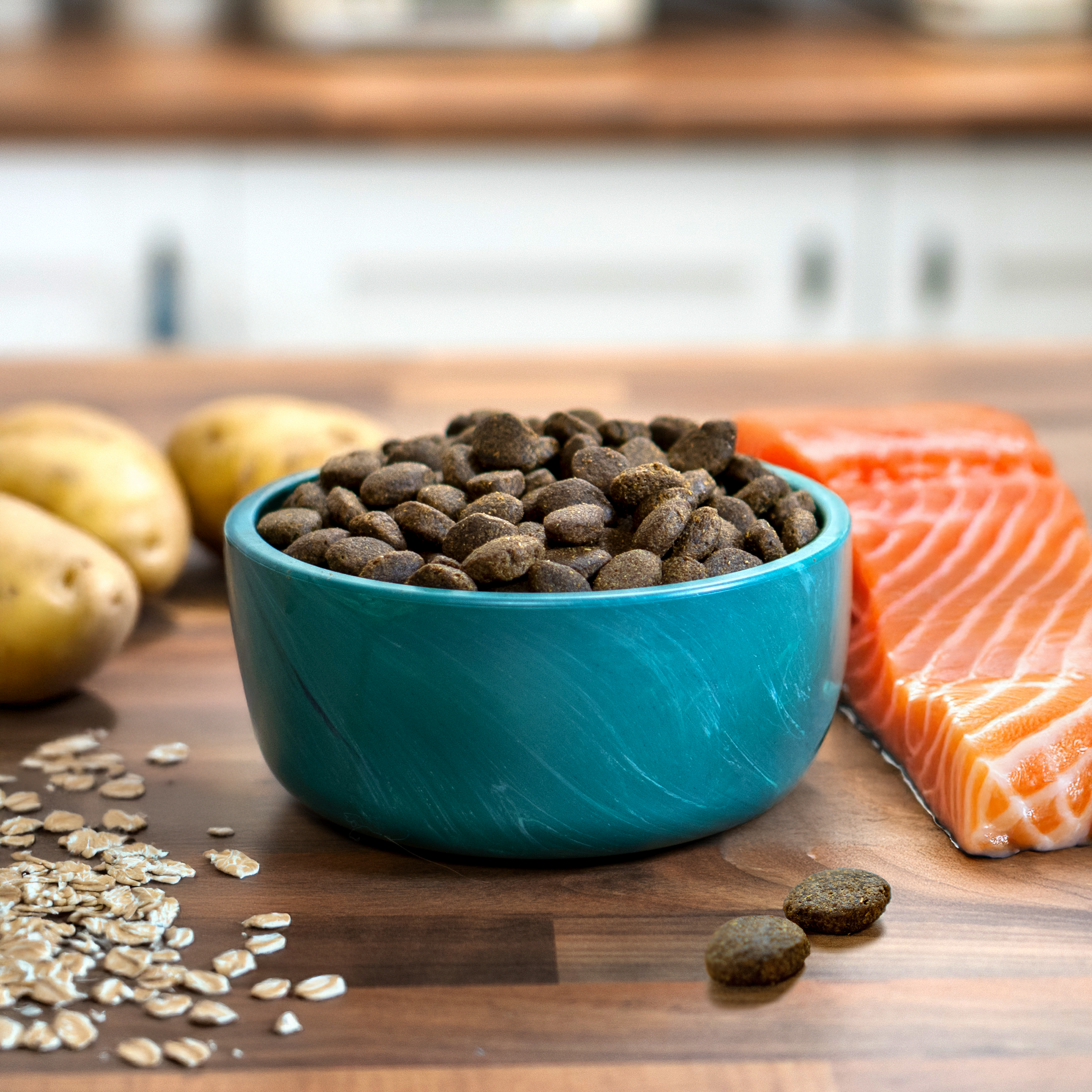 Our Super Premium Salmon & Potato Complete food is free from artificial colours and preservatives and contains 44% Salmon for optimum palatability, making it an excellent choice for fussy eaters whilst offering great digestibility.
